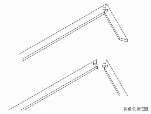 針對傳統(tǒng)的燕尾榫,榫頭與榫槽分別設(shè)在2個部件上,一個部件集中設(shè)立梯臺榫頭,而另一個部件集中設(shè)立與之外形互補(bǔ)的梯臺形榫槽,進(jìn)而使二者慎密連通。而該榫對傳統(tǒng)燕尾榫構(gòu)造進(jìn)行設(shè)計改善,2個貫串接部件均分別設(shè)有1對梯臺形榫槽和與其外形互補(bǔ)的梯臺形榫頭。成為一類斜角連通節(jié)點(diǎn),此榫用來木門構(gòu)造用材的斜角連通,可有效以免2個部件在受力時脫開,同時減少加工難度。