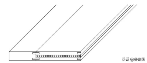如下圖所示,芯板的長度為1784 mm、寬度為200mm,厚度為15mm,芯板在距離高低兩頭4 mm處各開1個厚度為7 mm、深度為15mm的凹槽以擺放長度為1784mm、寬度為30mm、厚度為7mm木板條。