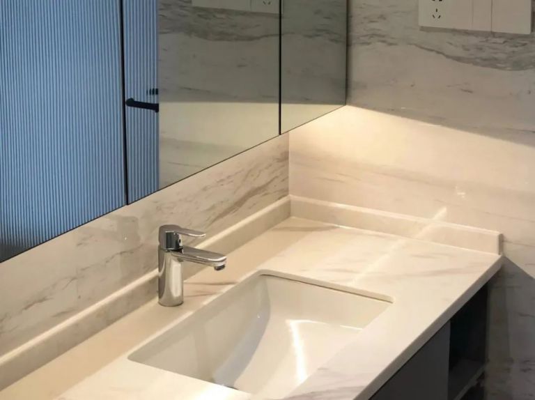 裝修時選擇懸浮式浴室柜,可以大大避免灰塵、霉菌的堆積。同時最好安裝臺下盆,臺盆與臺面無縫對接,沒有衛生死角,不易堆積水垢、霉菌。