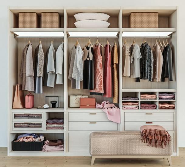 還有其他幾種方法可以節(jié)省空間并使步入式衣櫥中的物品易于抓取。嘗試使用隔板或額外的懸掛桿。抽屜插件可讓您的物品取用。